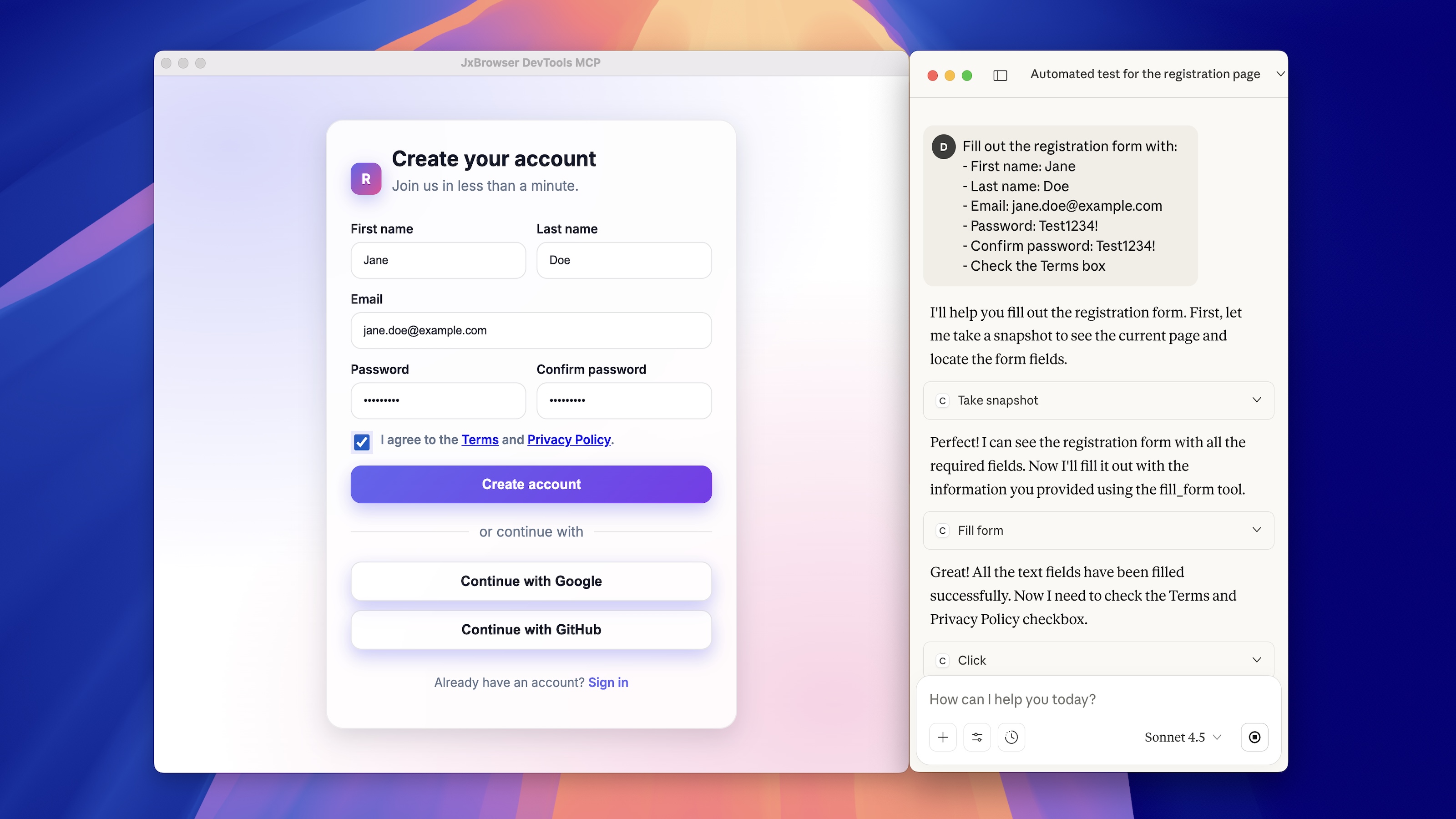 MCP 为浏览器自动化提供了切实可行的解决方案,且各类主流 MCP 服务器均可轻松与 JxBrowser 集成。这使得您能够通过自然语言实现 Java 应用的自动化控制。