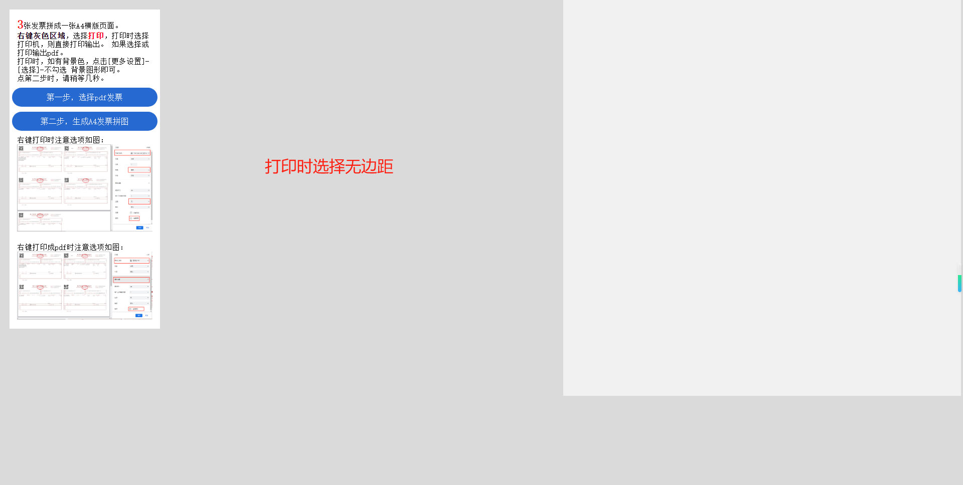 可以将本地批量下载的PDF发票,自动拼到A4纸上,一页可拼2张,3张,4张,拼完一键打印。