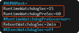 设置 systemd runtime watchdog(操作系统自带的 watchdog,守护整个 userspace,不依赖任何额外进程,稳定、可靠、开机早就接管,防止用户态守护进程挂掉)