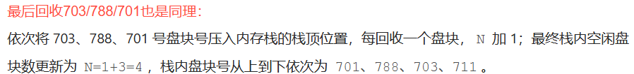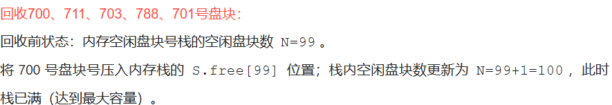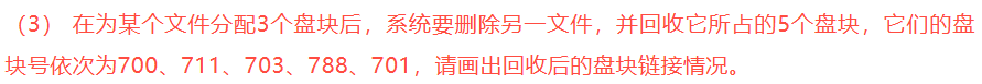 (3) 在为某个文件分配3个盘块后,系统要删除另一文件,并回收它所占的5个盘块,它们的盘块号依次为700、711、703、788、701,请画出回收后的盘块链接情况