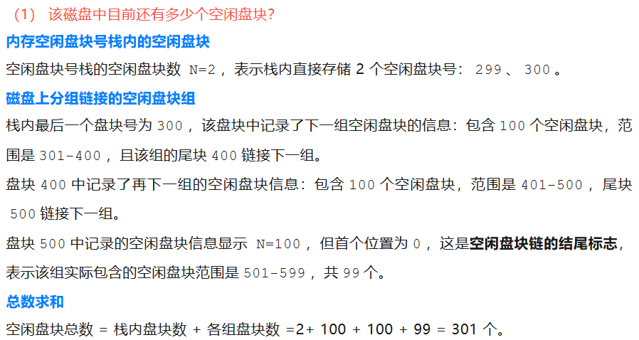 (1) 该磁盘中目前还有多少个空闲盘块?