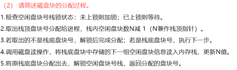(2) 请简述磁盘块的分配过程。
