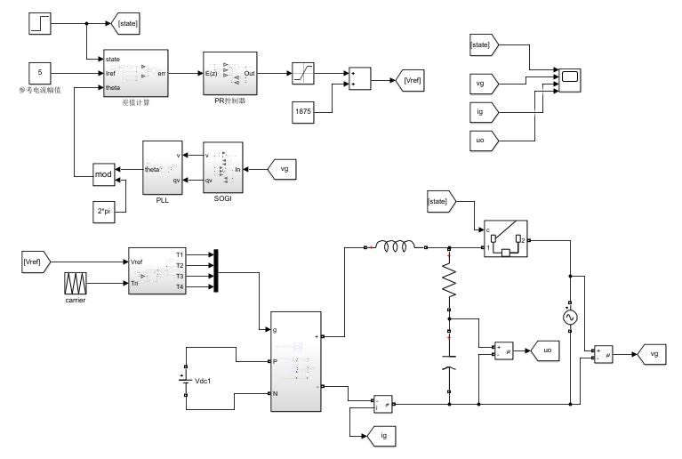 #基于Simulink的单相逆变器并离网控制 单相全桥并离网仿真模型;采用单环控制,并离网无缝衔接-切换时无明显跳变;调制采用单级倍频的方式,两种方案可供选择;仿真中尽可能考虑了单片机控制时的离散情况,对实物的实现具有很好的指导作用。 注:(V0002) 波形注释有问题,第三个是电流,第四个是电压。 仿真波形解读:0-0.2s(离网时逆变器输出电压跟随电网电压 );0.2-0.4s(并网时切换为电流跟随,可以看出此时电流幅值为预设值5V,相位与电网电压一致)。 Simulink版本:2018b