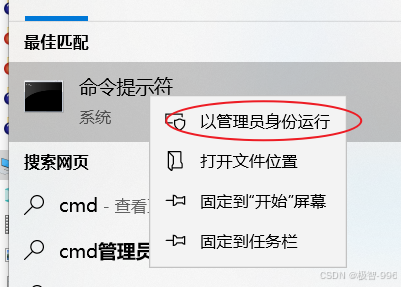 在开始菜单搜索 "CMD" ,右键点击 "命令提示符",选择 "以管理员身份运行",避免权限不足导致失败;