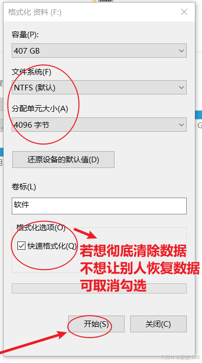 (3)想彻底删除隐私数据,别勾 "快速格式化",选择完整格式化,或用专业数据擦除工具,避免数据被恢复;