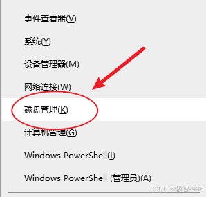 按下快捷键 "Win+X",选择**"磁盘管理"**(或右键点击开始菜单,找到 "磁盘管理"),等待系统加载所有硬盘;