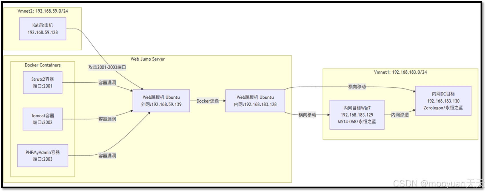 我们计划Kali攻击机(192.168.59.128)上创建了一个端口为12347的Socks5代理,通过跳板机(外网ip为192.168.59.139,内网ip为192.168.183.128)作为中转,使攻击者能通过代理直接访问192.168.183.0/24内网资源。