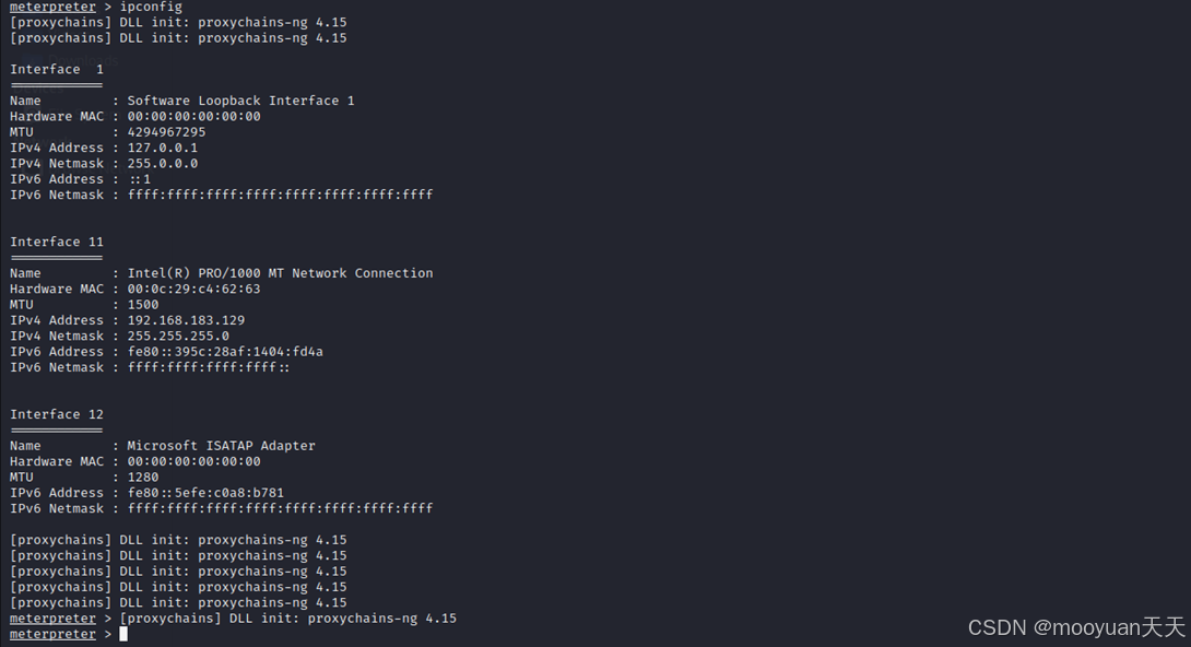 auxiliary/scanner/portscan/tcp、另一个exploit/multi/handler等)发往192.168.183.x的流量,都会被自动通过这个已建立的 Meterpreter 会话进行转发。 -