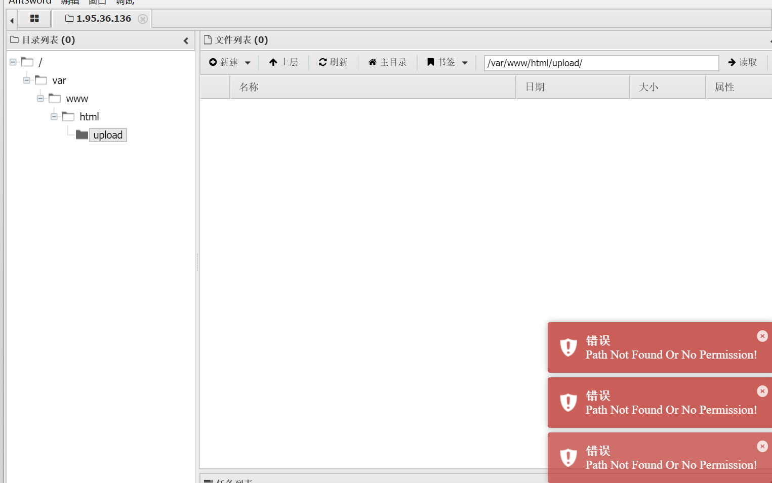 用蚁剑连接 连接后发现没有读取权限