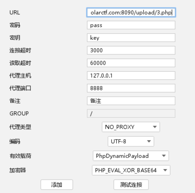 再重新上传jpg文件,然后蚁剑连接 发现不成功 这里试了很多次依旧不成功 所以查了一下别人的wp