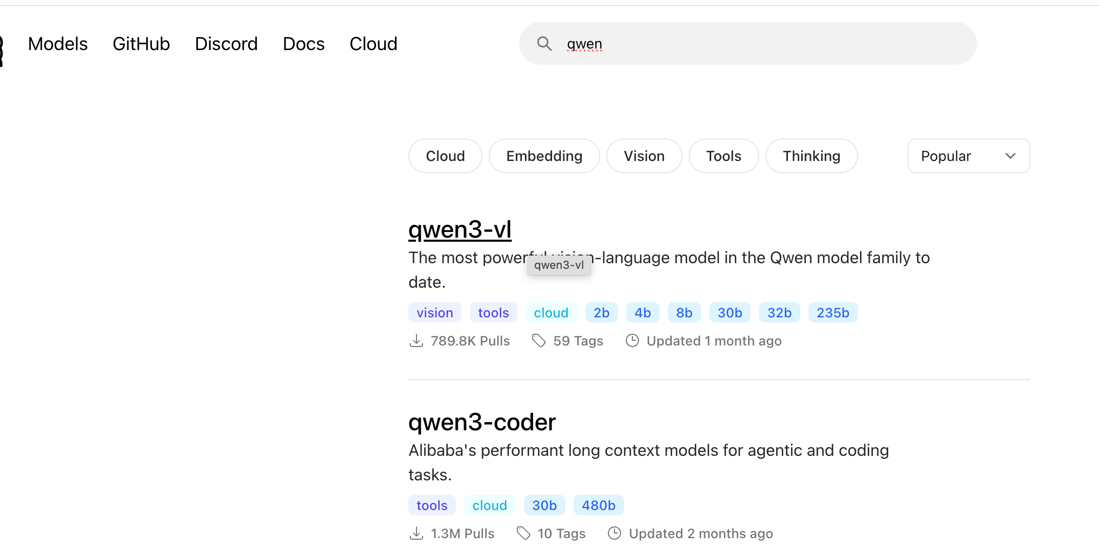 我们可以从ollama上下载,也可以从modelscope下载,也可以从huggingface下载对应的千问大模型