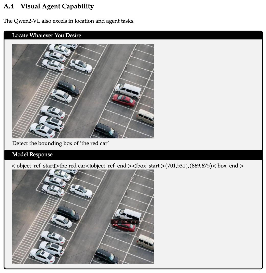 Qwen2 VL做2D grounding还是采取的类似Qwen1 VL的特殊token的表示形式: