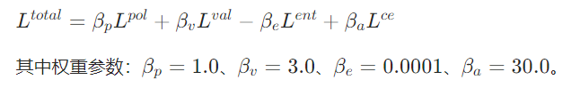 总损失融合:将辅助损失与 PPO 的策略损失、价值损失