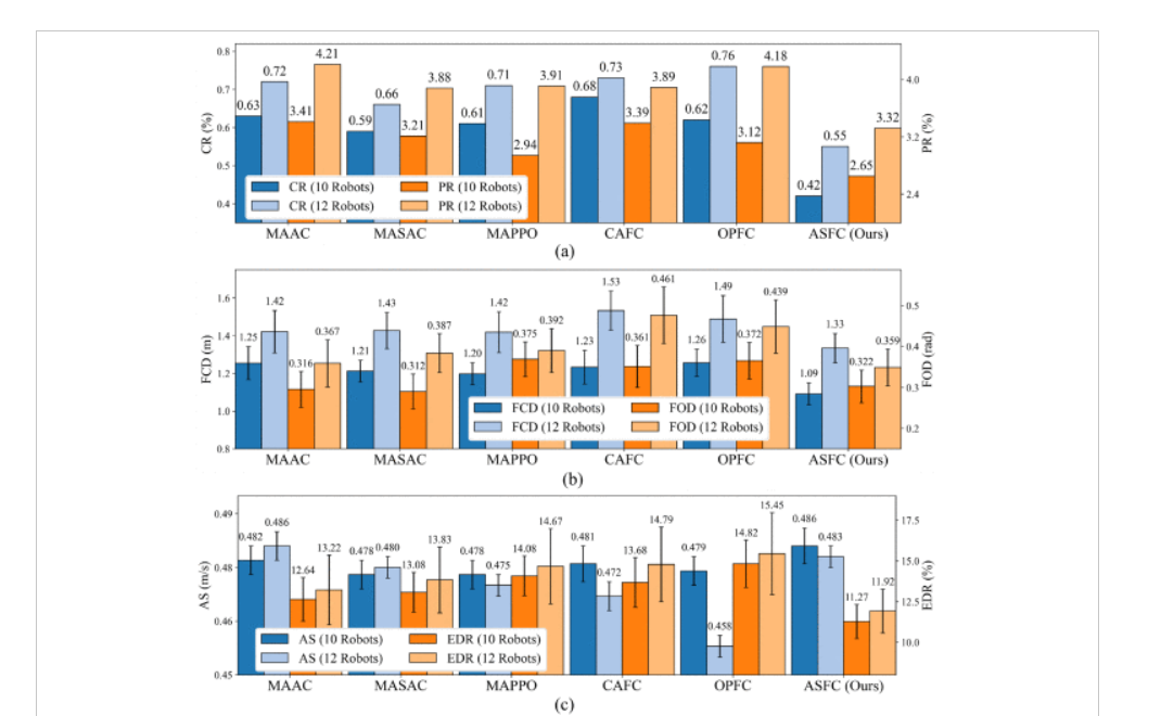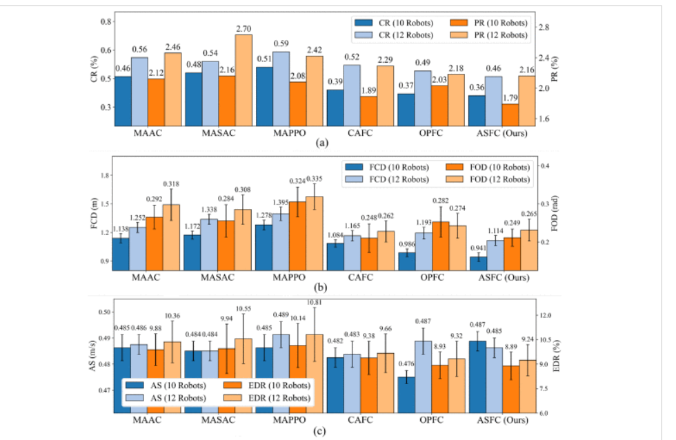 ASFC 遵循 "集中式训练、分布式执行" 范式,核心目标是让无通信能力的机器人仅通过局部观测,在静态障碍物 + 动态对抗干扰体的环境中,实现 "避碰、队形保持、高效抵达目标" 三大任务。技术方案围绕 "提升鲁棒性、泛化性、扩展性" 展开,分为五大核心模块。
