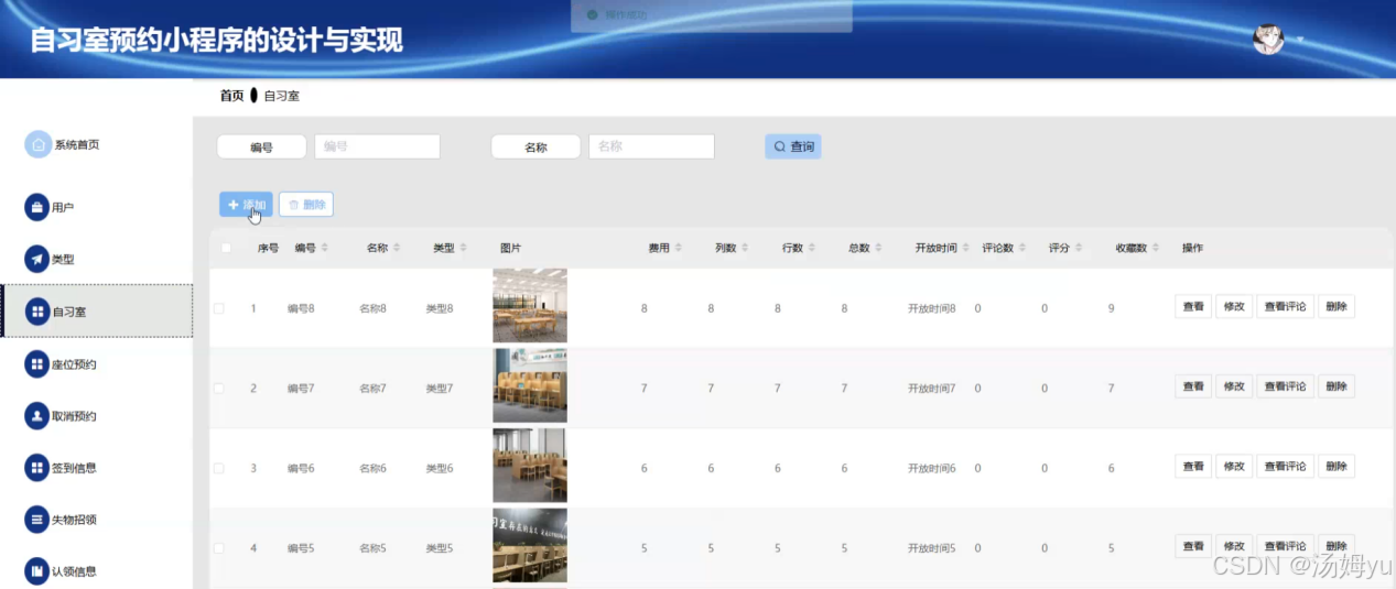 随着高等教育的普及和学习需求的不断增长,自习室作为学生学习的重要场所,其资源分配与管理面临着诸多挑战。传统自习室管理模式通常依赖人工登记和口头预约,不仅效率低下,还容易出现信息不对称、座位资源浪费等问题。特别是在考试周或复习高峰期,自习室座位供不应求,学生往往需要花费大量时间和精力寻找可用座位,严重影响学习体验和效率。传统管理方式难以实时监控自习室的使用情况,难以实现资源的动态调整和优化配置。开发一套高效、便捷的自习室预约管理系统,以数字化手段优化自习室资源配置,已成为提升校园服务质量、满足学生学习需求的迫切需求。