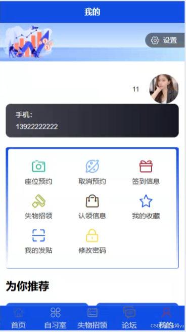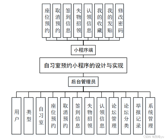 本研究旨在设计与实现一款基于微信小程序的自习室预约系统,通过整合多种功能模块,为用户提供高效、便捷的自习室预约服务,同时满足自习室管理的多样化需求。系统的核心内容围绕用户、自习室、预约管理以及社区互动等方面展开。系统为用户提供了全面的管理功能,包括个人信息维护、预约历史查询以及实时状态跟踪,确保用户能够快速完成预约操作并获取相关反馈。在自习室管理方面,系统支持对自习室类型、座位布局的灵活配置,管理员可以根据实际情况调整自习室资源,优化座位分配策略。座位预约功能是系统的核心,用户可以通过微信小程序快速查询自习室的空闲座位,并完成预约操作。系统提供取消预约功能,方便用户在计划变更时及时调整预约状态,避免资源浪费。为了确保预约的有效性,系统引入了签到信息管理模块,用户需在规定时间内完成签到,否则预约将自动失效,释放座位供其他用户使用。系统还设置了失物招领和认领信息模块,方便用户在自习室丢失或发现物品时进行登记和查询,提升自习室的管理效率和服务质量。在社区互动方面,系统设计了论坛管理、论坛分类以及举报记录等功能模块。用户可以在论坛中分享学习心得、交流经验,同时通过论坛分类功能,快速找到感兴趣的话题。举报记录模块则用于维护论坛秩序,管理员可以根据举报信息及时处理违规内容,营造良好的学习氛围。系统管理模块为管理员提供了强大的后台支持,包括用户管理、自习室配置、预约记录查询以及数据统计分析等功能,帮助管理员高效管理自习室资源,提升系统的整体运行效率。通过这些功能模块的有机结合,本研究旨在打造一个智能化、人性化的自习室预约系统,推动自习室管理的信息化和现代化发展。
