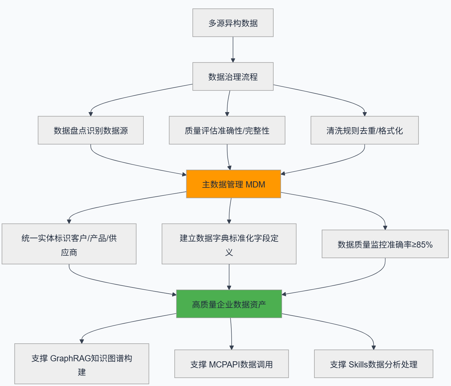 - 历史数据积累: 企业需具备至少 3 年以上的历史业务数据,数据体量建议在 100GB 以上才能充分发挥知识图谱的价值。