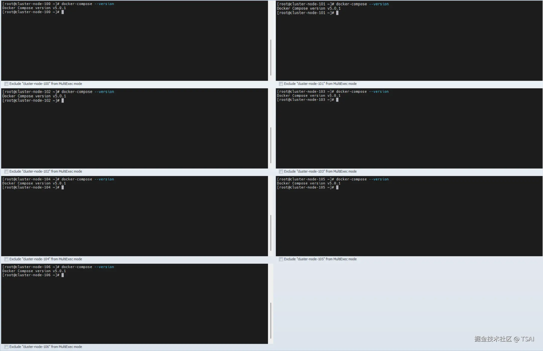 鉴于我们是需要在 7 台虚机同时安装 Docker、Docker Compose(可选)的容器部署环境,为了避免重复冗余的准备操作,我这里使用 MobaXterm 的多执行对 7 台虚机批量进行安装。