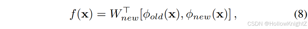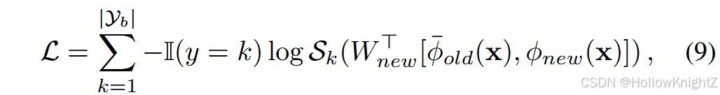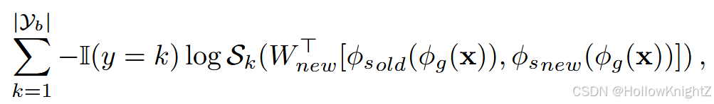 其中 ϕ o l d \phi_{old} ϕold 是之前的骨干, ϕ n e w \phi_{new} ϕnew 是新初始化的骨干。 [ ⋅ , ⋅ ] [·,·] [⋅,⋅] 表示特征聚合, W n e w ∈ R 2 d × ∣ Y b ∣ W_{new}∈R^{2d×|Y_b|} Wnew∈R2d×∣Yb∣ 是新初始化的FC层。在模型更新过程中,旧的主干被冻结以保持原有的知识: