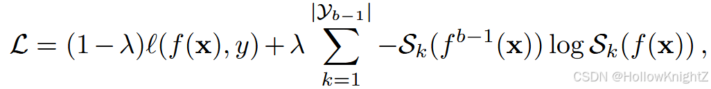 其中 λ = ∣ Y b − 1 ∣ ∣ Y b ∣ \lambda=\frac{|Y_{b-1}|}{|Y_b|} λ=∣Yb∣∣Yb−1∣ 表示旧类在所有类中的比例。随着渐进性任务的演化,该值逐渐增大,说明模型对旧任务的关注程度更高。