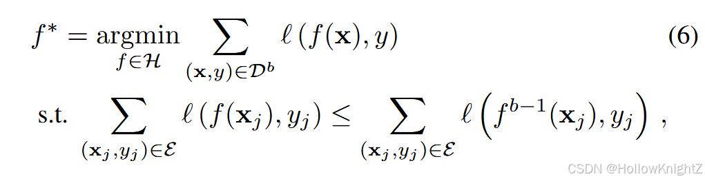 定义2 .示例集是前面任务 E = { x j , y j } j = 1 M , y j ∈ Y b − 1 E=\{x_j,y_j\}{j=1}^M,y_j∈Y{b-1} E={xj,yj}j=1M,yj∈Yb−1 的额外实例集合,模型可以利用 E ∪ D b E∪D^b E∪Db 进行每个任务的更新。模型对每个任务的训练过程结束后的样例集进行管理。