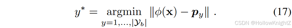 式中:N为第i类的实例数。式(16)通过嵌入空间中的类中心计算类原型。因此,通过将实例匹配到最近的原型,可以不依赖全连接层进行推理:
