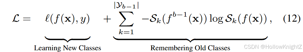 LwF 是第一个将知识蒸馏应用于CIL的成功案例。与式(11)类似。通过知识蒸馏构建正则化项,以抵抗遗忘。