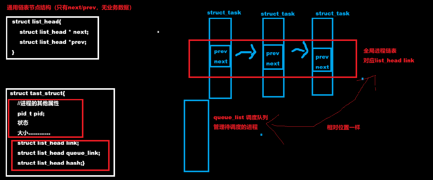 全局进程链表(list_head link):管「所有存活进程」,支持遍历全量进程(如 ps 命令);