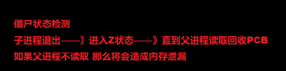 如果这个时候父进程没有读取 那么就可能造成内存泄漏 此时的状态就是僵尸状态
