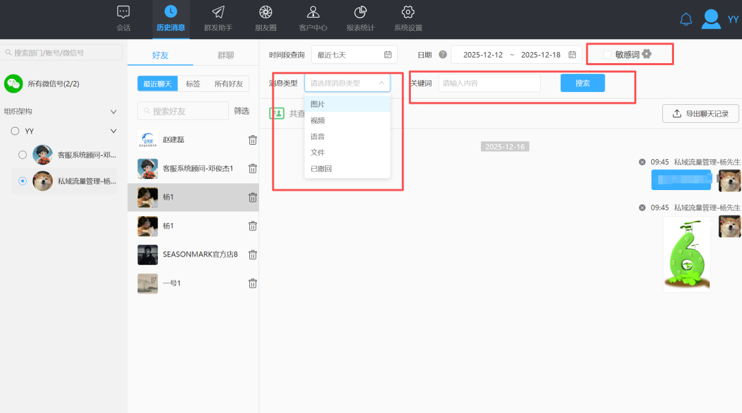团队协作与监管:聊天记录实时同步留存,有效防止员工违规操作,保护客户资源,助力企业实现规范化、可视化团队管理。