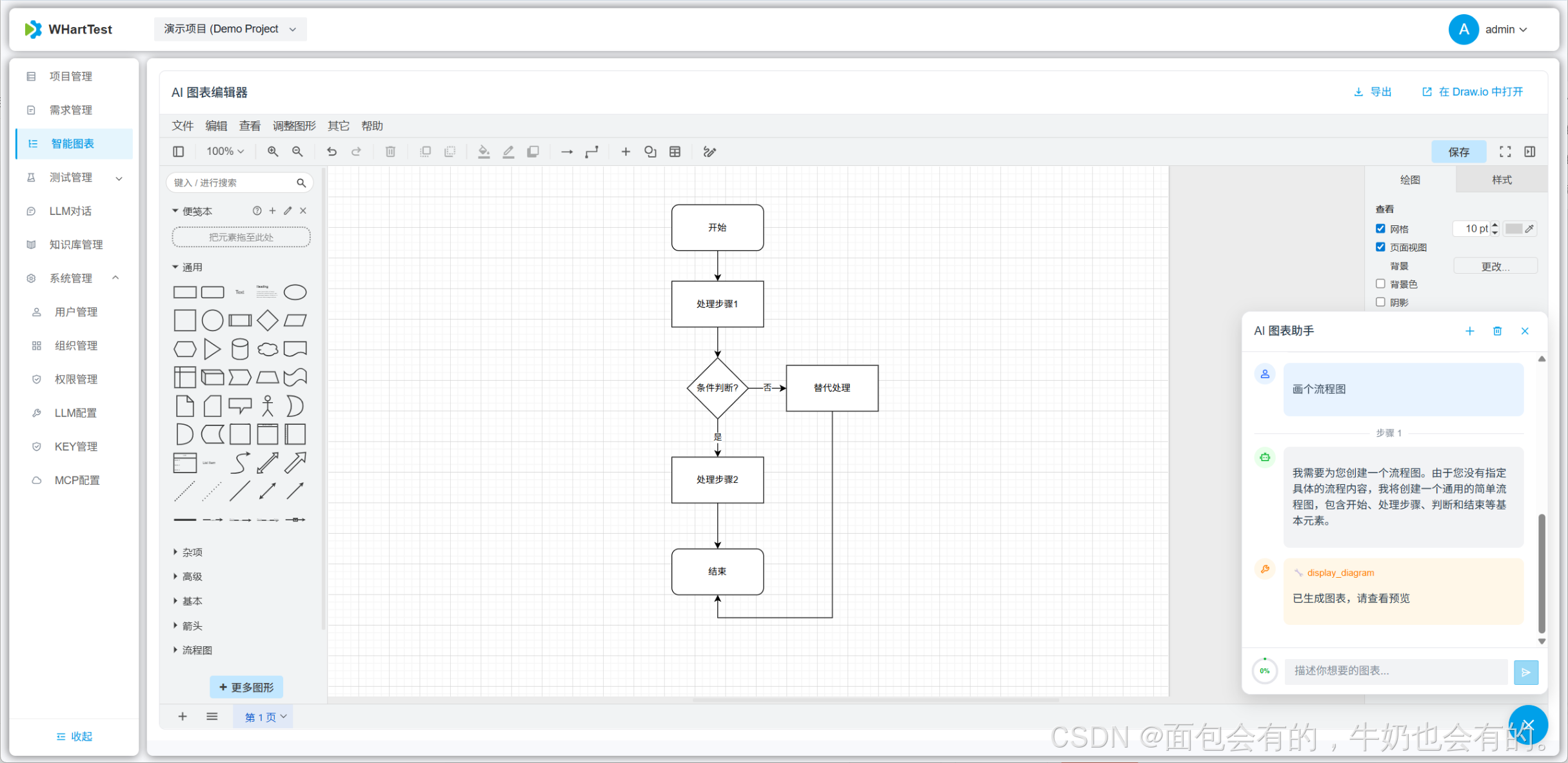 集成 Draw.io 自托管服务,支持 AI 生成流程图、架构图等