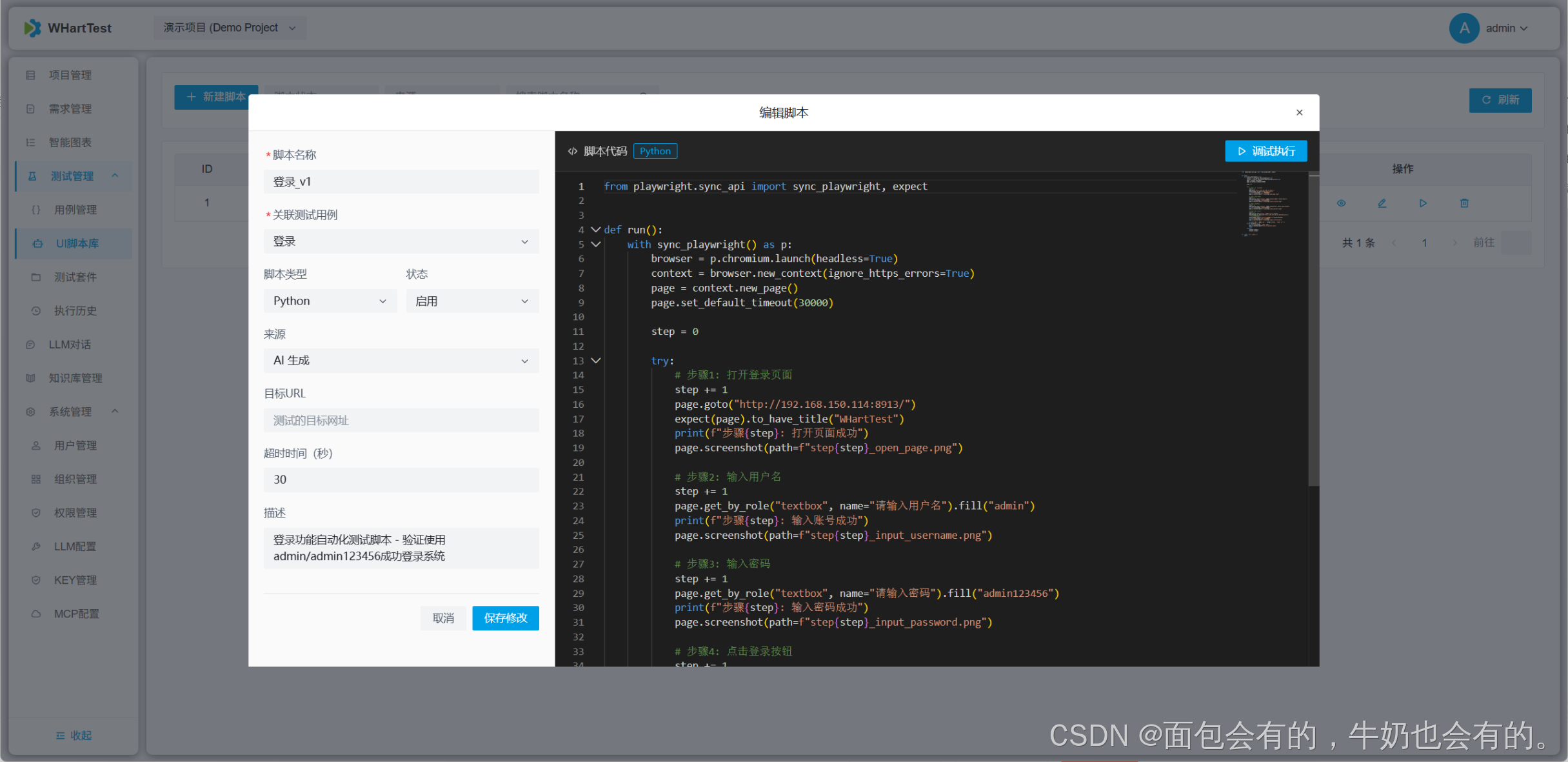 新增自动化脚本管理模块,支持 AI 智能生成 Playwright 测试脚本
