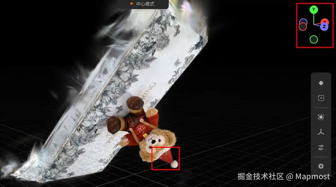 首先我们一般可以看到,查看器右上角有个很明显的XYZ轴。我们刚进入查看器后什么都别动 ,XYZ这个初始的方向就是世界坐标系的指向 ,我们只需要关心指向上方的是哪根轴就行 。这个场景中就是Y轴。