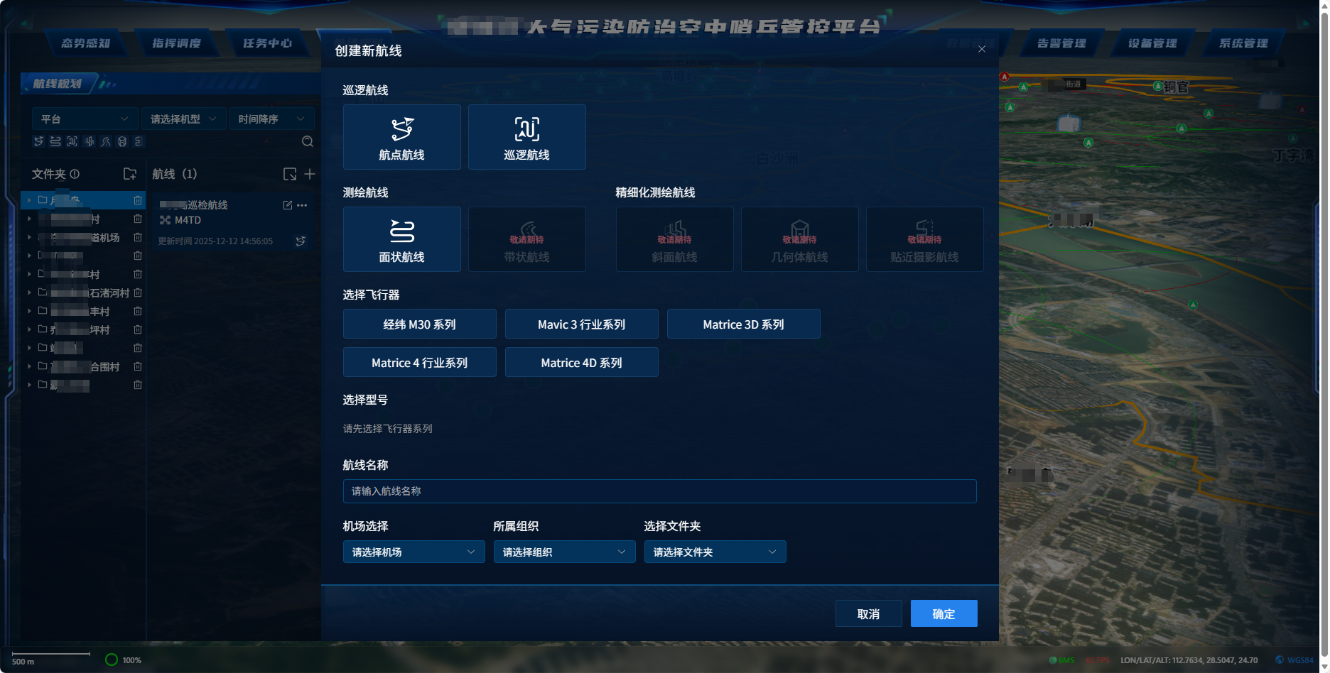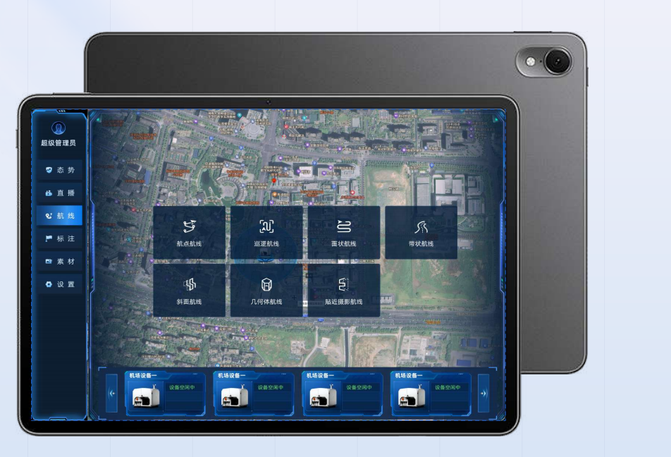 航线管理智能化:支持航线导入 / 导出 / 复制,基于实景三维规划最优航线,生成倾斜摄影面状航线,航点可配置 AI 算法,实现 "航线自适应场景,算法精准识别"。