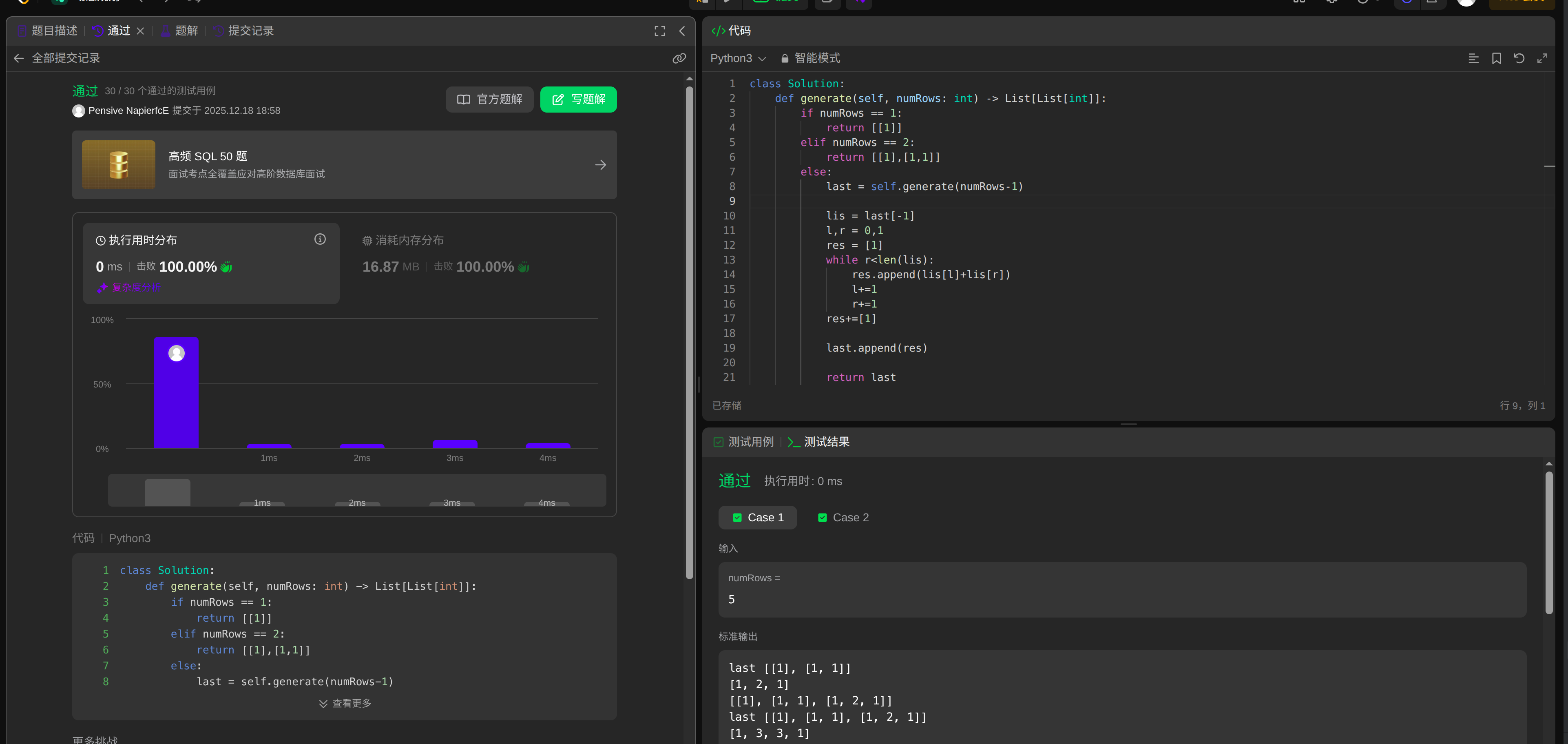 输出: [[1],[1,1],[1,2,1],[1,3,3,1],[1,4,6,4,1]]