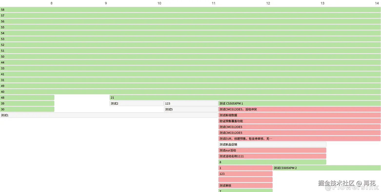 如图中展示,每个活动的轨道展示正常,空白符渲染合理,并且会根据状态渲染对应的颜色。