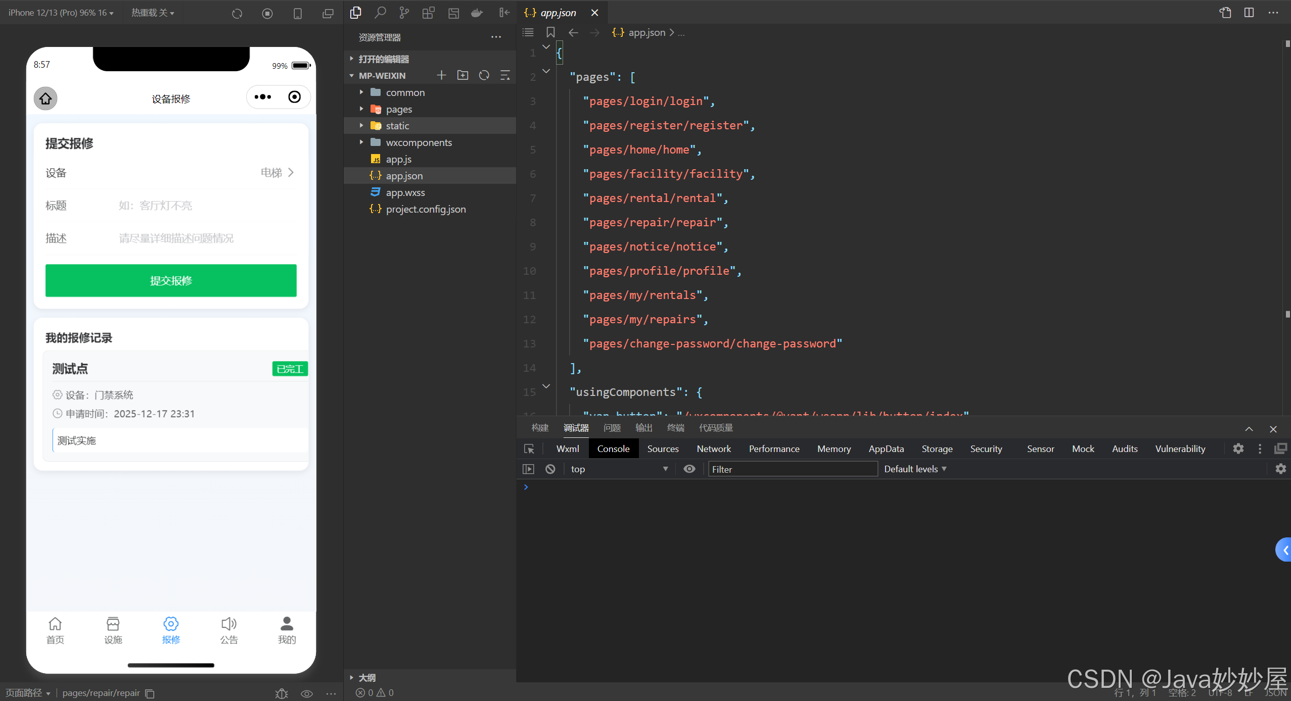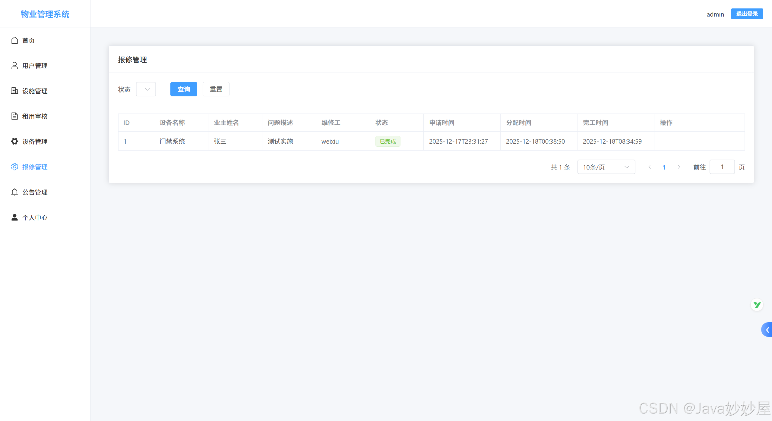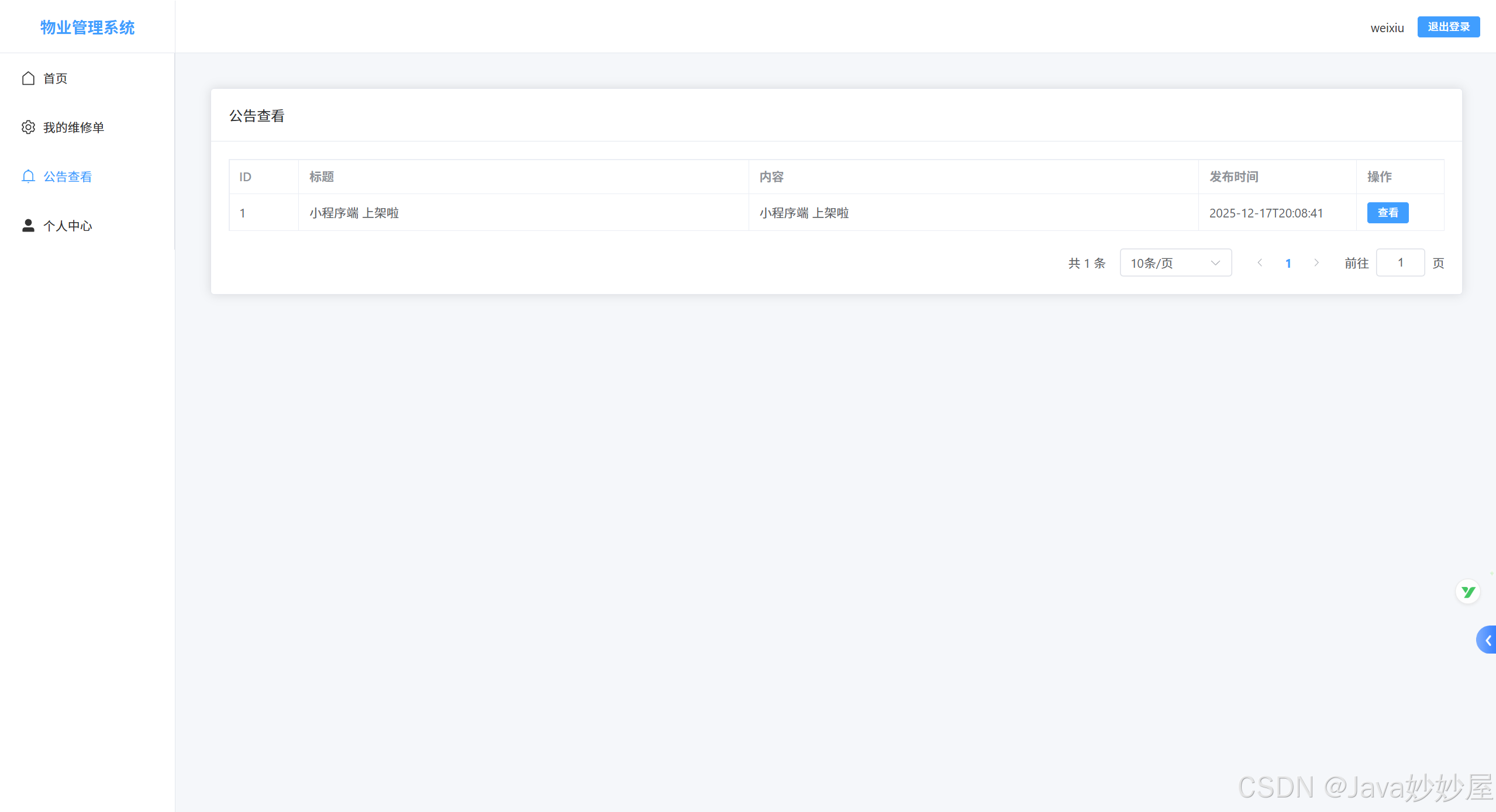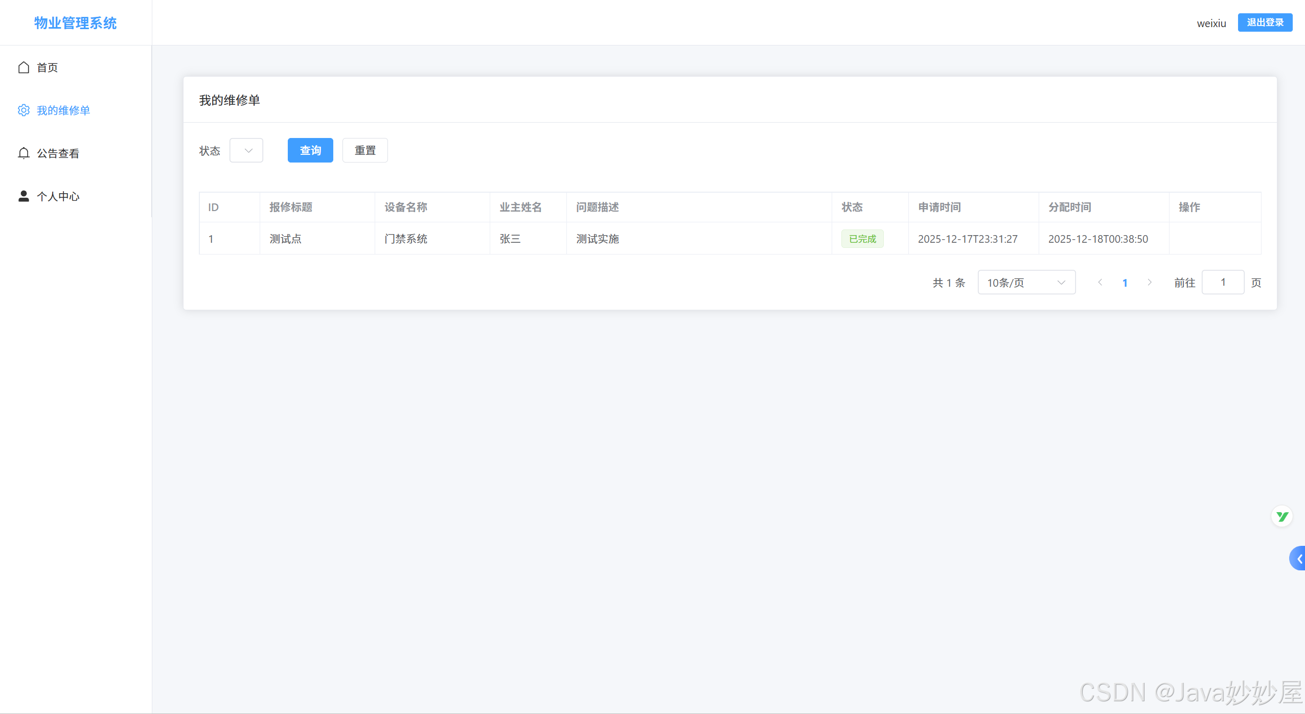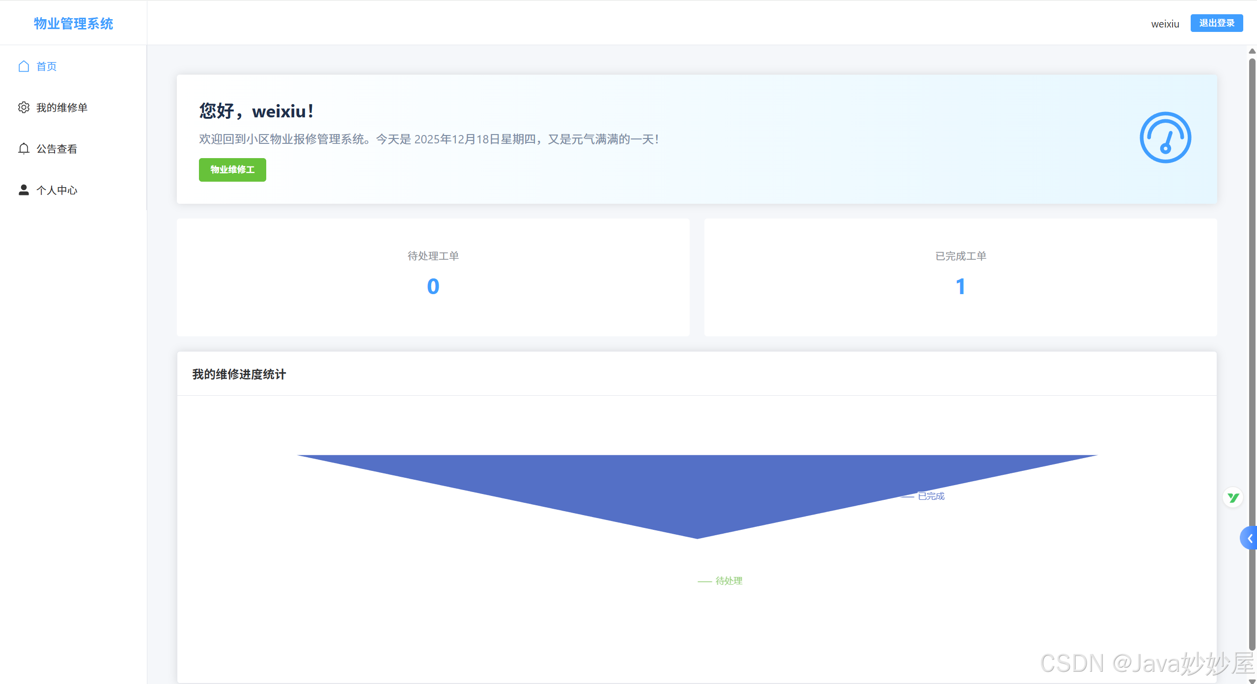 基于 Spring Boot 3.1.5 + MyBatis-Plus 3.5.8 + Vue3 + Element-Plus + uni-app + uView Plus 实现的小区物业报修管理系统。