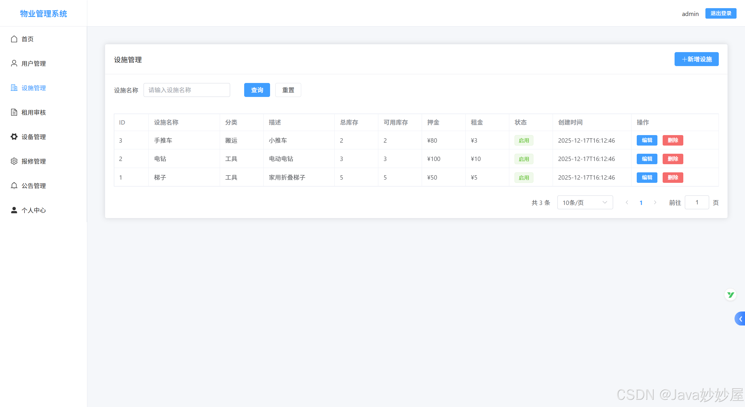 设施租用审核:审核租用申请、直接标记归还/确认归还