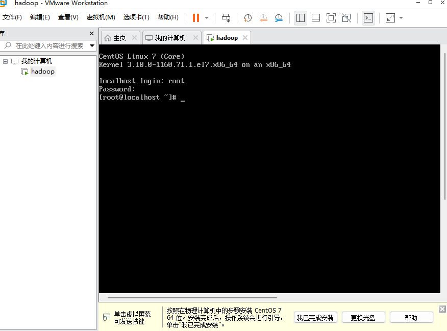 在虚拟机中成功安装CentOS简化版,如下图所示: