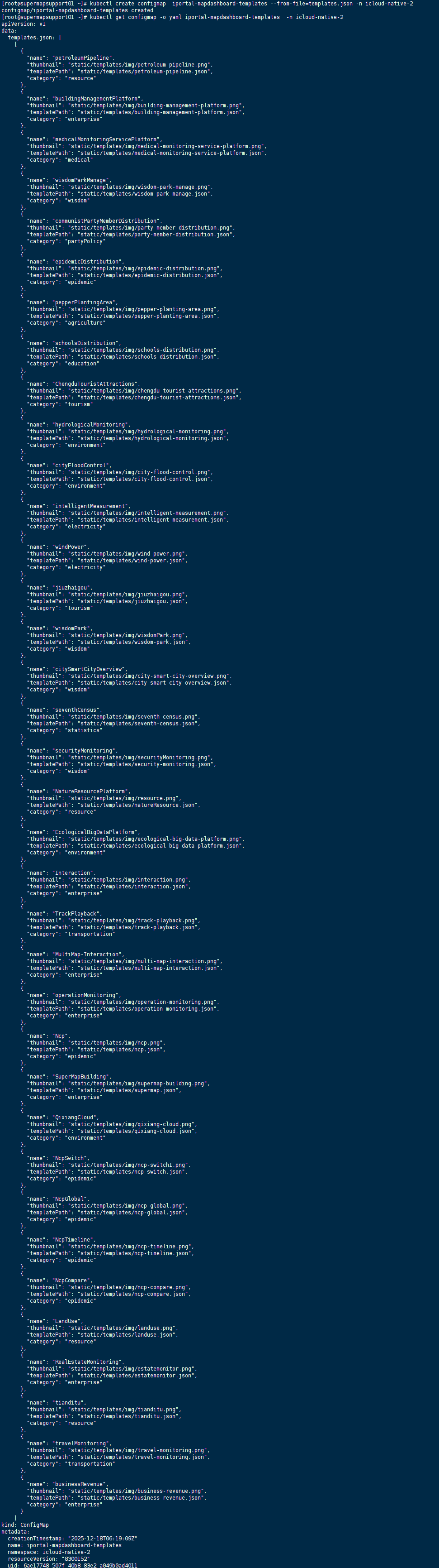 修改iportal大屏(iportal-mapdashboard)编排,对容器"/usr/share/nginx/html/apps/mapdashboard/v2/static/templates/templates.json"文件通过configmap方式进行持久化。