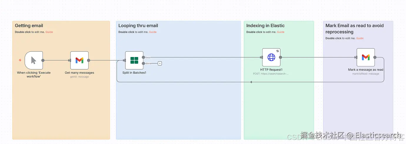 在成功索引后,工作流会在 Gmail 中将邮件标记为已读,以防止重复处理。这种模块化设计遵循 n8n 最佳实践,通过分离关注点并允许每个组件独立测试。