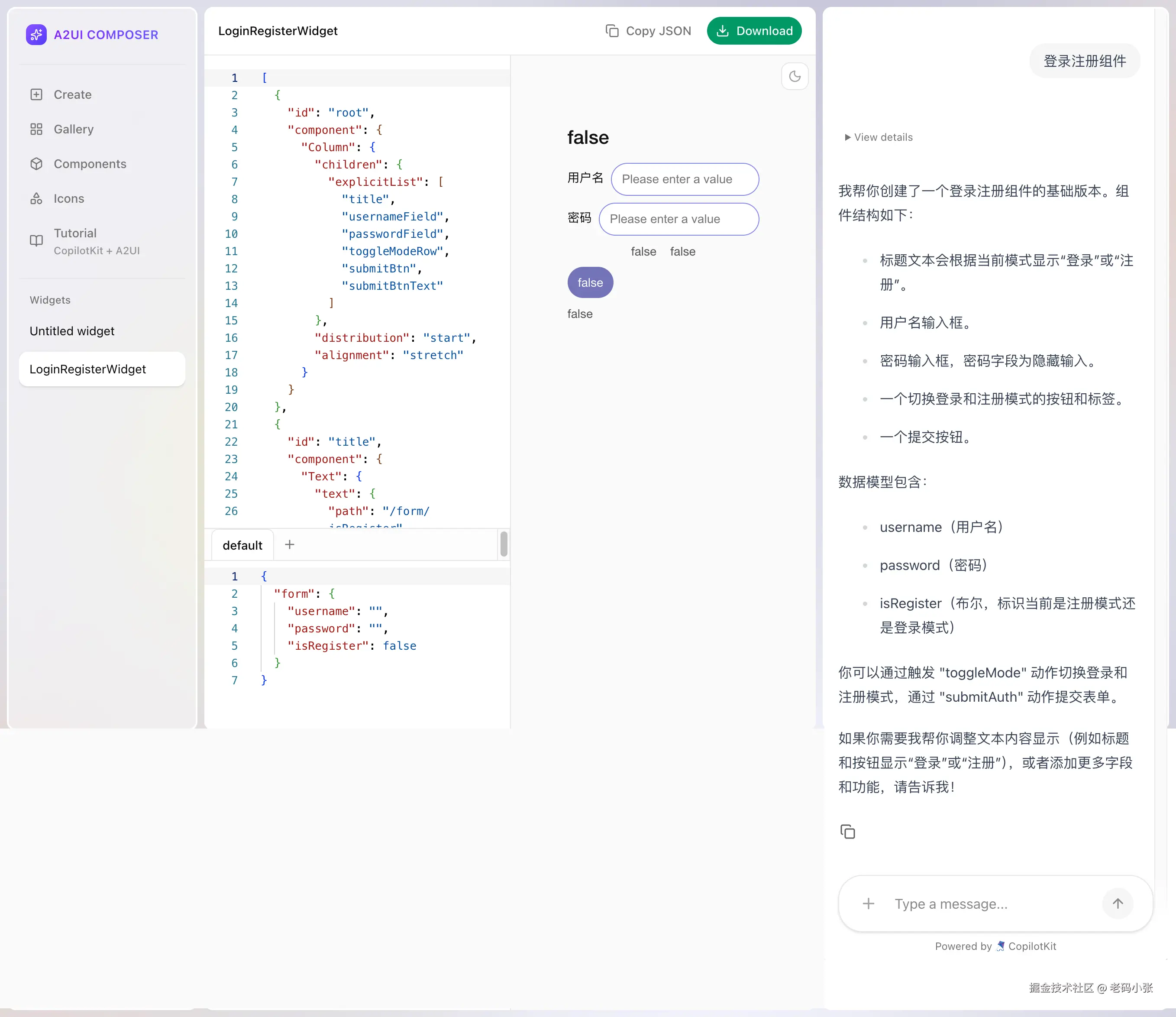 说句有点酸但也很真实的话:A2UI 这条路,我相信不少人(包括你、也包括我)早就在脑子里推演过了------"别让模型吐代码,吐个 UI 描述,然后客户端用自己的组件去画"。这不是多么玄的发明,甚至有点像常识。