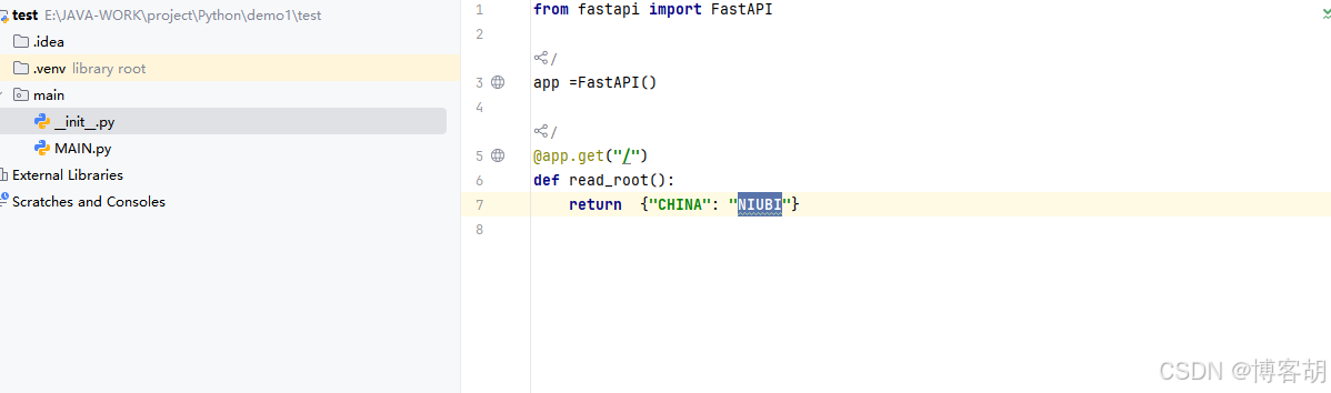 这行代码从< code>fastapi 模块中导入了 FastAPI 类。FastAPI 类是 FastAPI 框架的核心,用于创建 FastAPI 应用程序实例。