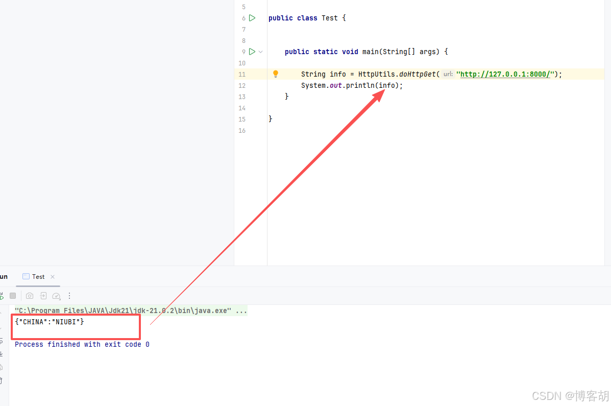 String info = HttpUtils.doHttpGet("http://127.0.0.1:8000/test/10?name=周树人"); System.out.println(info); 打印信息:{"我是ID":10,"我是Name":"周树人"}