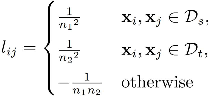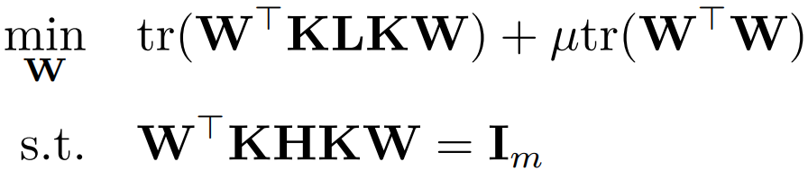 其实这个问题到这里就已经是可解的了,也就是说,属于计算机的部分已经做完了。只不过它是一个数学中的半定规划 (SDP,semi-definite programming) 的问题,解决起来非常耗费时间。由于 TCA 的第一作者 Sinno Jialin Pan 以前是中山大学的数学硕士,他想用更简单的方法来解决。他是怎么做的呢?