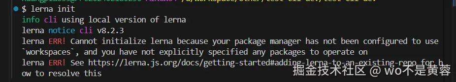 lerna init可能会报错 解决方法: - 在package.json中添加如下代码: