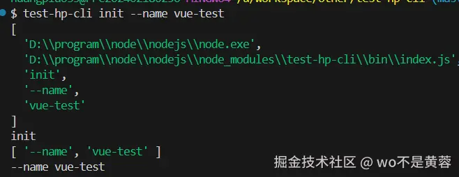 npm i -g test-hp-cli,查看bin目录下文件链接的路径可以看出来是链接到本地的 - 执行