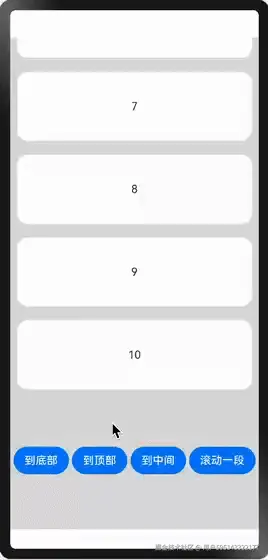 如下图所示,点击按钮时控制Scroll滚动到底部、顶部、中间位置,此时就需要用到Scroller滚动控制器。