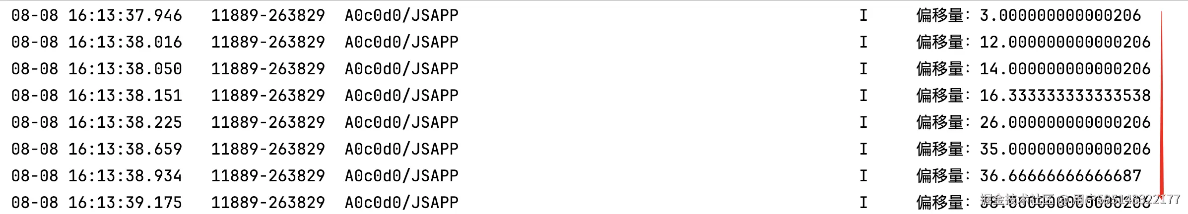 在滚动时,监听滚动偏移量并打印,如下图所示,总偏移量yOffset_total是依次递增的。