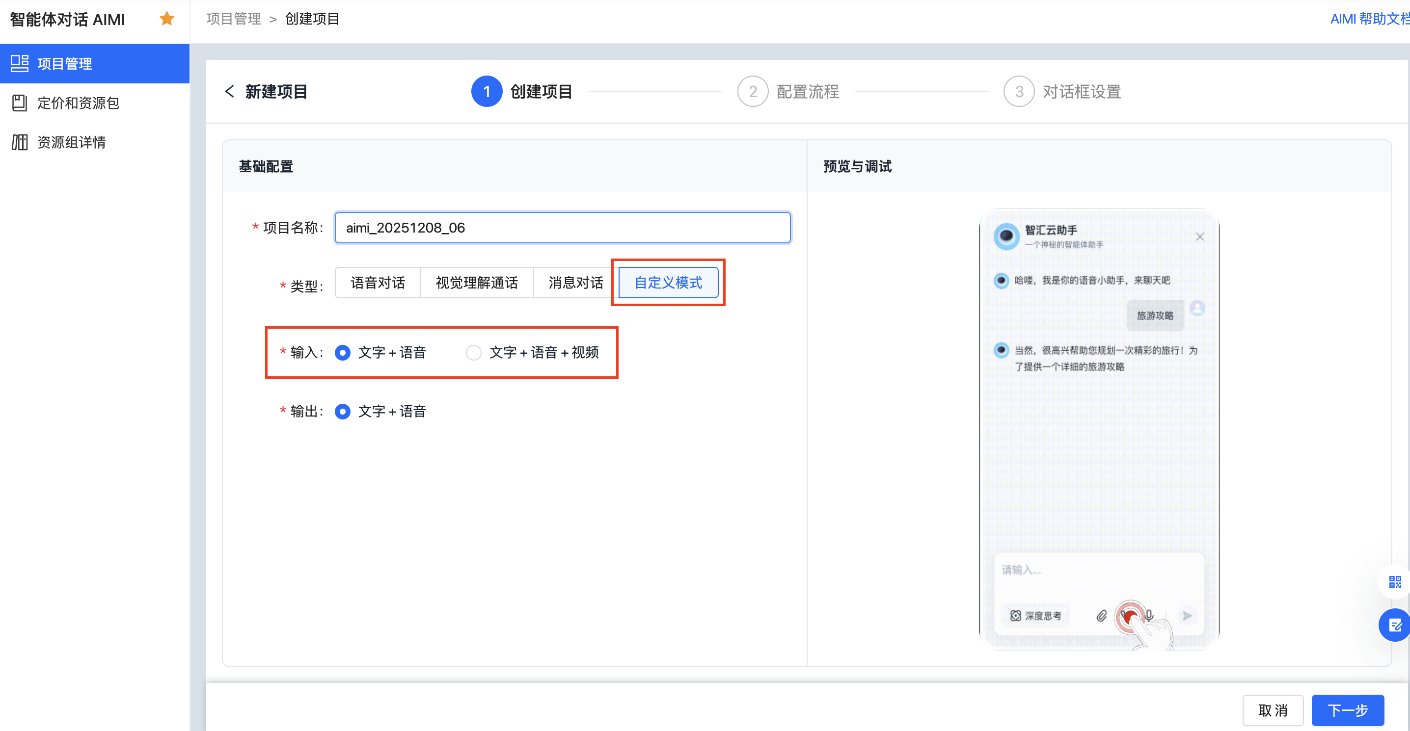 新增自定义模式,支持语音对话、视觉理解与消息对话场景进行组合